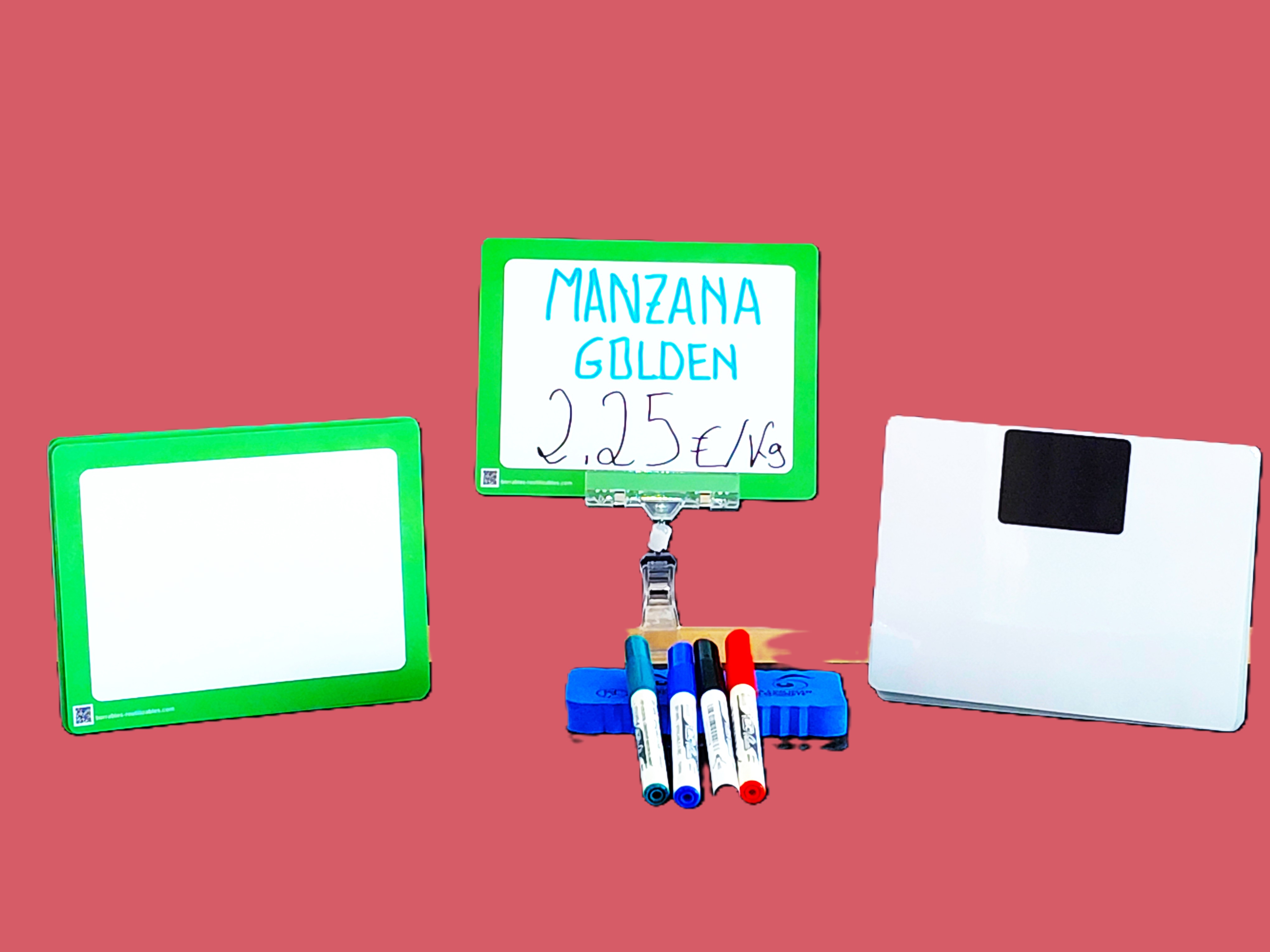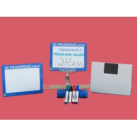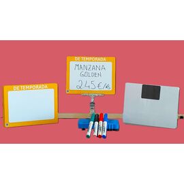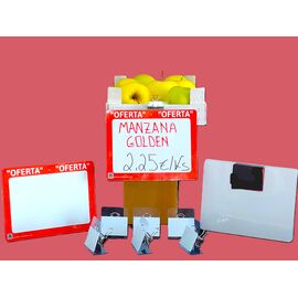 Aptas para cualquier pinza sujeta precio y se pueden enganchar en cualquier lineal que tenga una base de metal o en nuestras pinzas específicas para estas pizarras con imán trasero