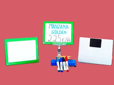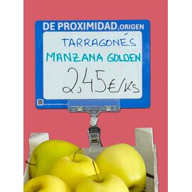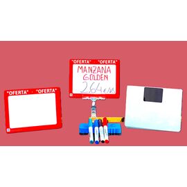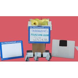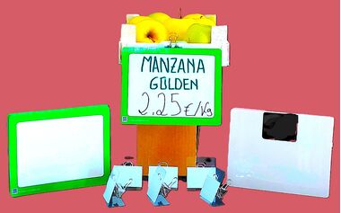 Indica nombre y precio de los productos de una forma rápida y muy visual,utilizando el codigo colores del marco a tu conveniencia.